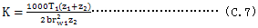 fm——在一定的齧合油溫條件下的齧合磨擦因數。假如節線速度 v爲2m/s<v<25m/s和K值爲1.4N/mm2<K<14N/mm2時,則fm可用公式(C.6)來計算。超過此範圍時,齧合磨擦因數應用實驗方法確定 。