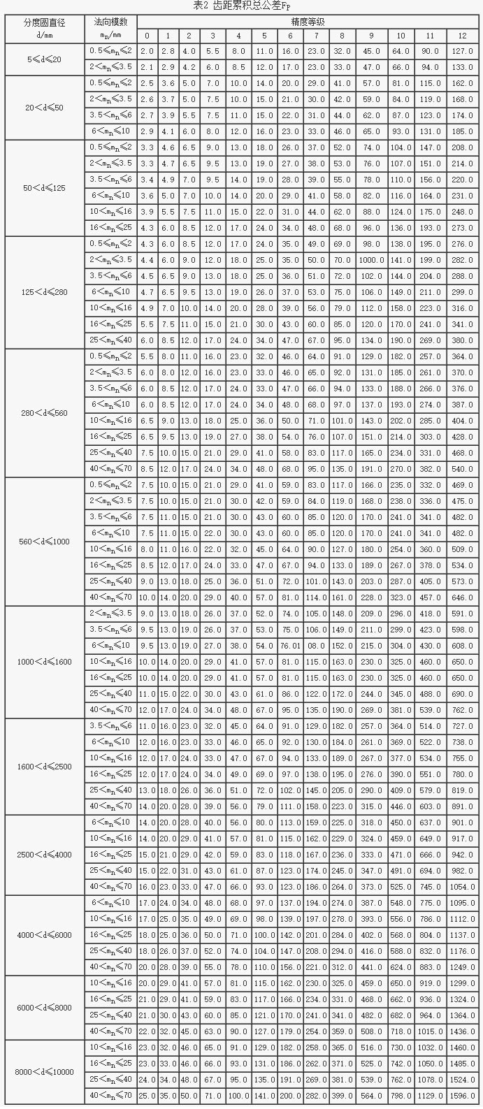 輪齒同側齒面偏差的定義和允許值輪齒同側齒面的精度允許值(一)(GB/T10095.1-2001)
