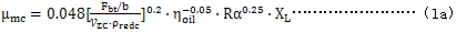 沿齧合線的平均摩擦因數μmc,可由測量[1]得到與由公式(1)估計出。雖然,局部磨擦因數在節點C接近於零,當引入公式(1)時 ,其平均值可用節點的參數與油溫Θoil時油的黏度ηoil大緻得出。