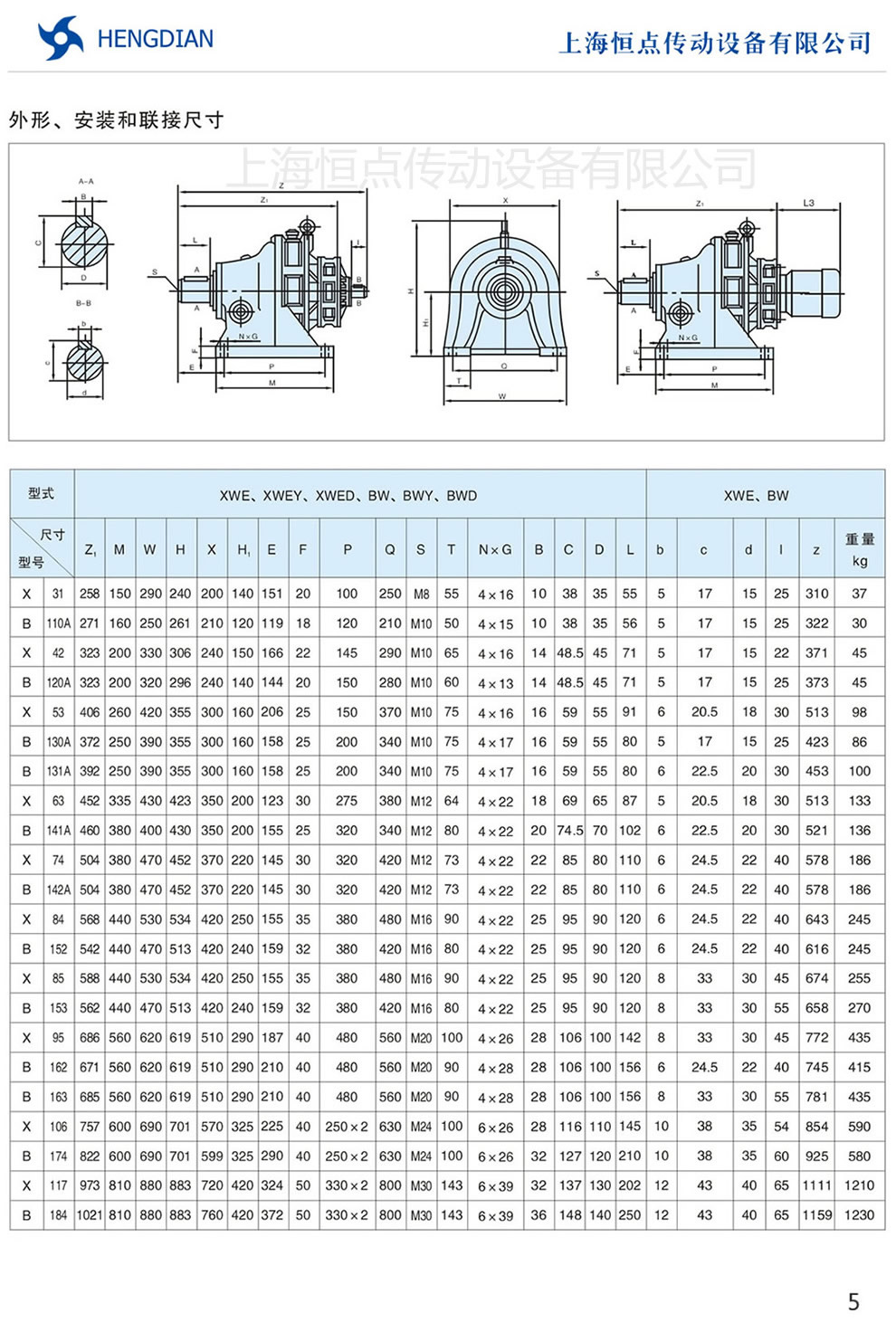 1 - X/B擺線減速機基本介紹 2 - X/B擺線減速機型号,規格和扭矩力表