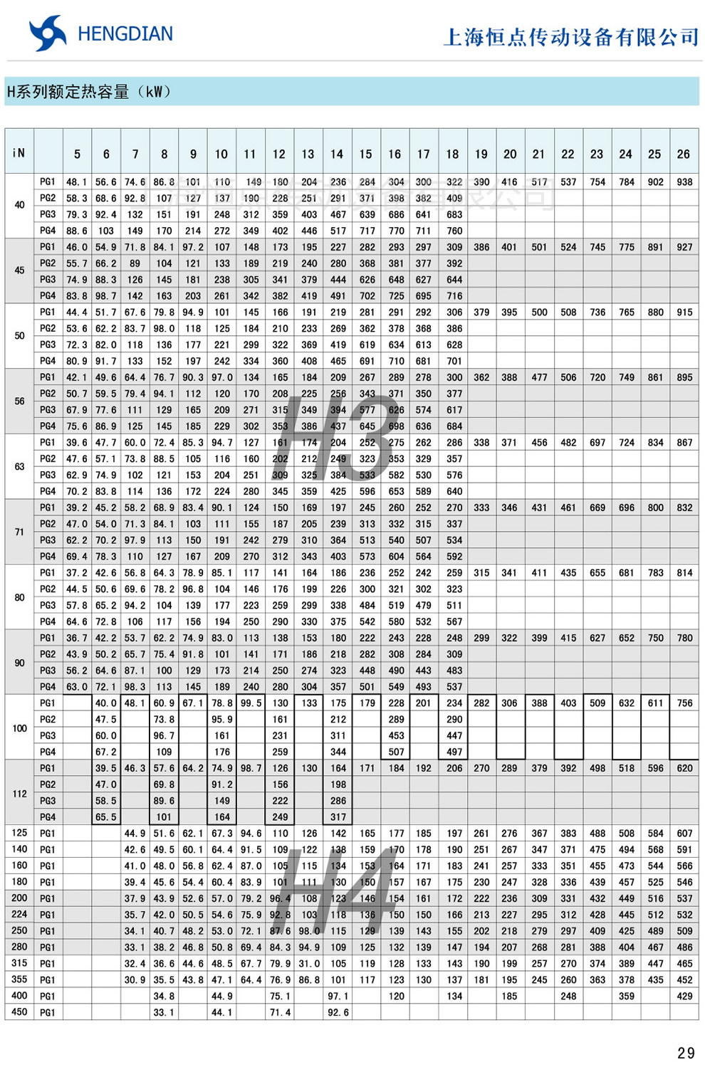 H系列額定熱容量 - HB标準工業齒輪箱