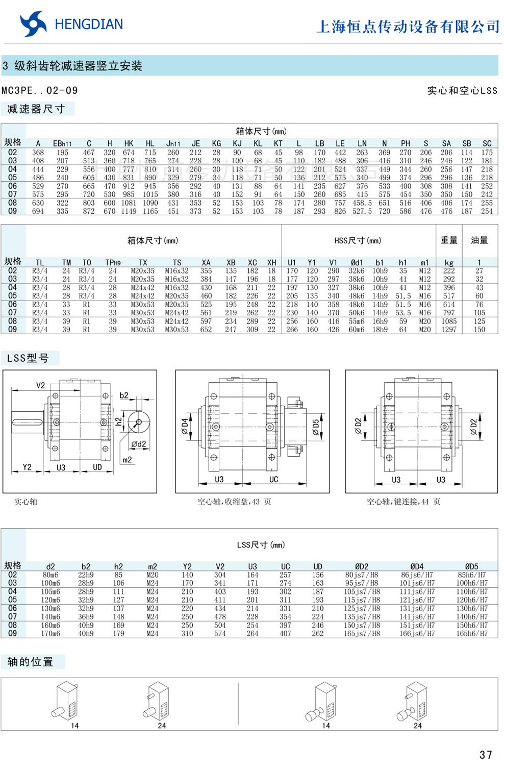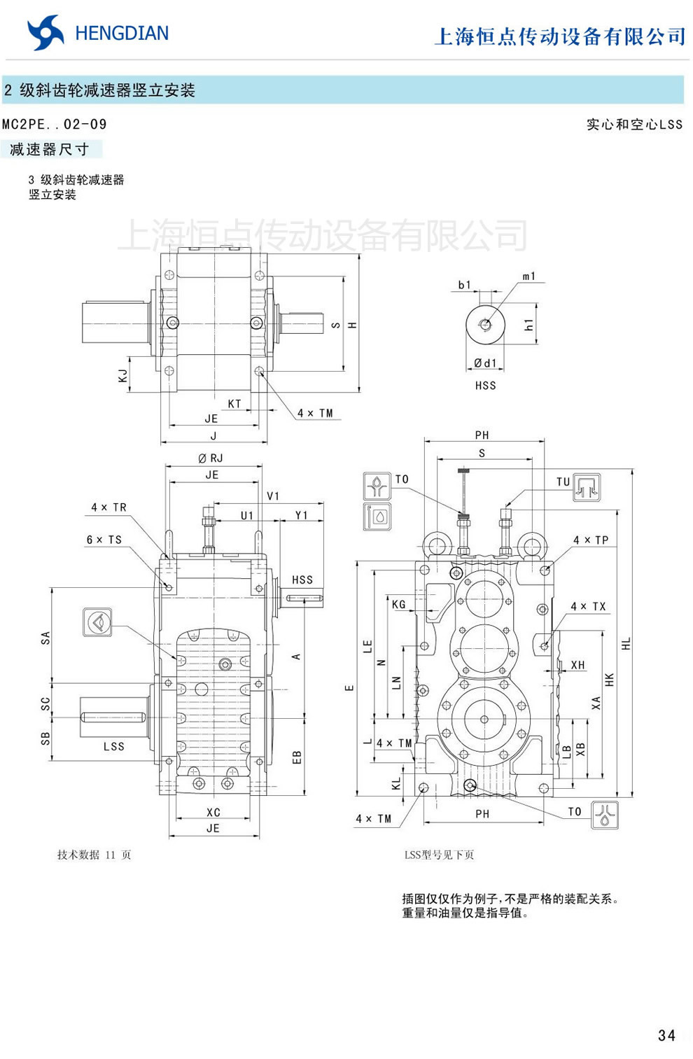 傳動能力和外型安裝尺寸/斜齒豎立安裝 - MC硬齒面減速器